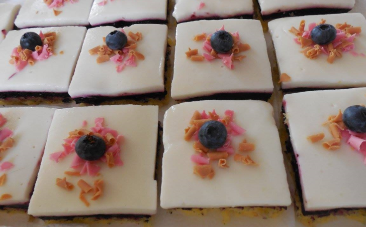 Zeesan rozmícháme s vodou a hned přišleháme do jogurtu. Osladíme podle chuti a naneseme na vychladlou borůvkovou náplň. Necháme v lednici ztuhnout nejlépe do rána. Potom nakrájíme a dozdobíme podle vlastní fantazie.