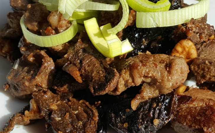 Sušené švestky namočíme do vody, jen na chvilku, než připravíme maso.