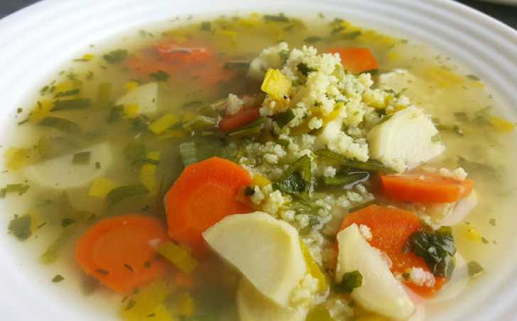 Když je zelenina téměř měkká, přidáme na drobno nakrájený pórek a jáhly. Vaříme až jsou jáhly měkké. Dochutíme solí.