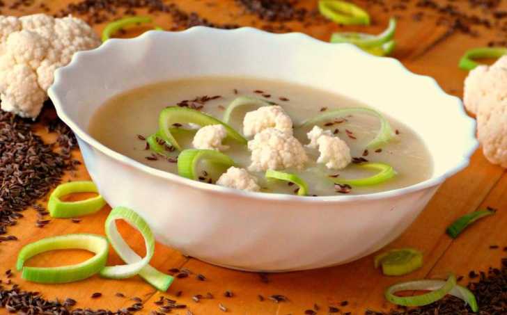 Na ghí orestujeme pokrájený pórek, zde jsem použila pouze světlou část, přidáme očištěnou pokrájenou petržel, celer, ředkev, na růžičky rozebraný květák, krátce prohřejeme a zalijeme vodou. Přidáme kmín, osolíme a vaříme do změknutí zeleniny. Dle potřeby podlijeme vodou.