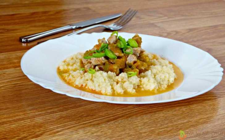Pokrájíme si pórek, který orestujeme na Ghí, přidáme na kostičky pokrájené krůtí maso, zamícháme, necháme zatáhnout, přidáme lahůdkovou papriku, osolíme, podlijeme vodou. Přidáme oloupaný, vydlabaný, na malé kostičky pokrájený patizon, dusíme, dokud není maso měkké. Během dušení přidáme prolisovaný stroužek česneku, pokud nepřipravujete pro děti, můžete si samozřejmě přidat dle vlastní chuti. Patizon se rozvaří poměrně rychle a omáčku krásně zahustí.