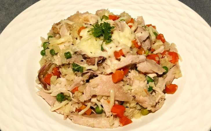 (Květákovou "rýži" lze koupit v supermarketech také mraženou. Tu stačí jen zlehka orestovat.)