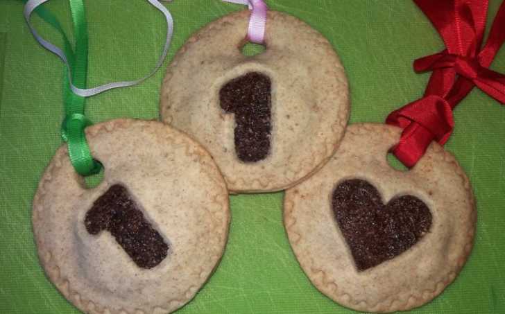 Po vytažení z trouby sundáme z plechu a necháme vychladnout. Pak už jen provlečeme mašličku a máme hototvo.
