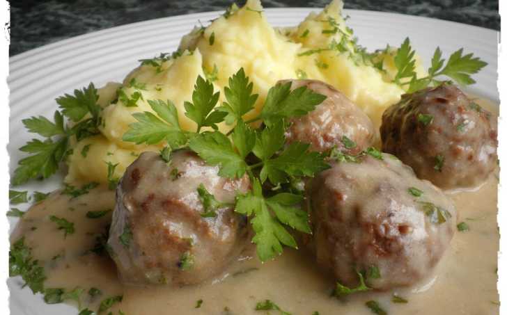 Na másle nechat zesklovatět cibuli, přisypat mouku a umíchat světlou jíšku, tu rozředit vývarem a nechat provařit. Pak přidat hořčici, Worchester, sůl, pepř, petrželku a smetanu, vložit masové kuličky a nechat prohřát.