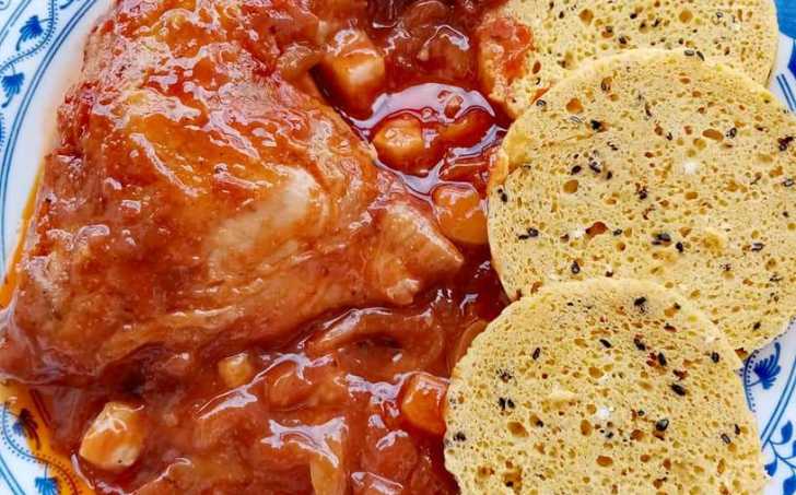 Jako přílohu jsem si zvolila lučinový knedlík (rcpt. zde také), do kterého jsem přidala lžičku černého sezamu.