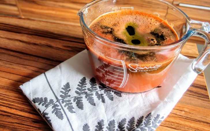 Odšťavená mrkev, řapíkatý celer, jablka, listový salát, citronová šťáva.