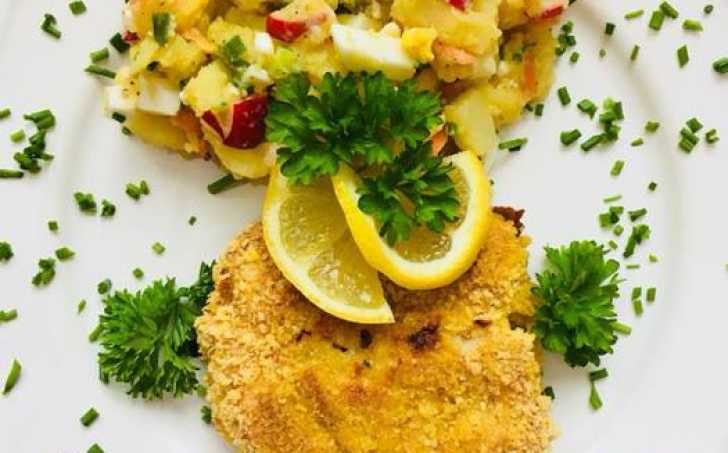 Rybu jsem obalila jako v trojobalu, jen místo klasické strouhanky jsem dala kukuřičnou a upekla nasucho bez oleje. (Je to takové pravda trošku tvrdší, ale když si to zakápnete citronem strouhanka změkne :))) ).