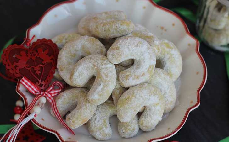 Druhý den těsto vyndáme z ledničky, necháme chvilku povolit, aby se nedrolilo, ale zároveň, aby nebylo úplně mazlavé. V prstech vytvoříme hádka (můžeme na pomoučené ploše) ohneme do tvaru rohlíčku. Pečeme ve vyhřáté troubě na 160°C do růžového zbarvení cca 12 minut při délce "hádka" cca 4 cm na plechu vyloženém pečícím papírem.