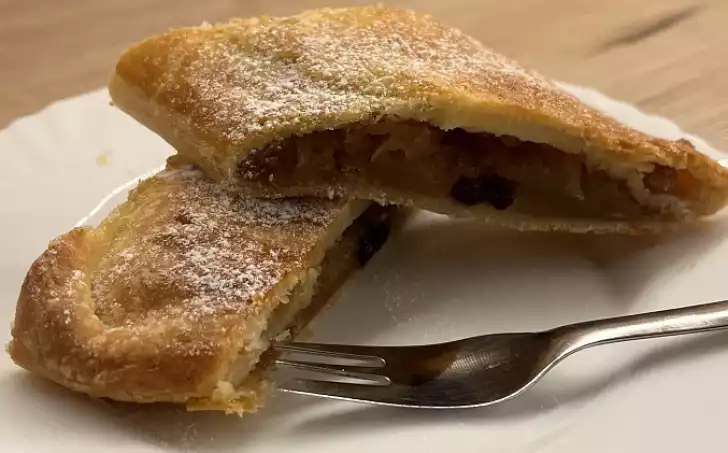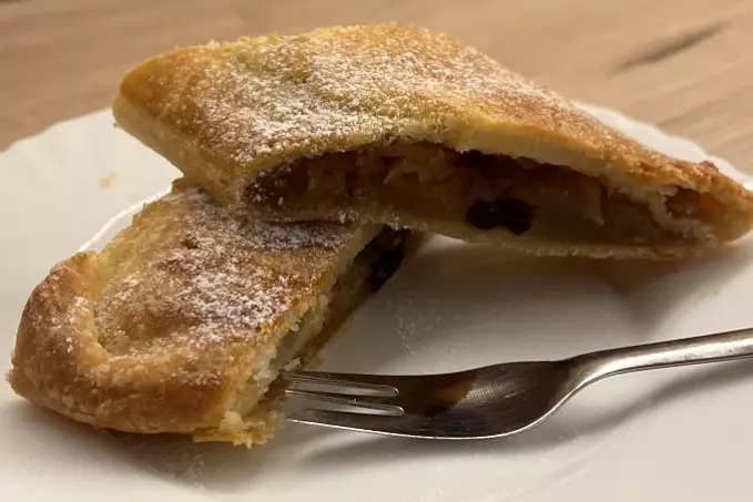 Do mouky nastrouháme máslo, vyklopíme tvaroh, přidáme sůl, vajíčko, ocet a vypracujeme nelepivé těsto. To dáme do chladu, než připravíme jablečnou náplň.