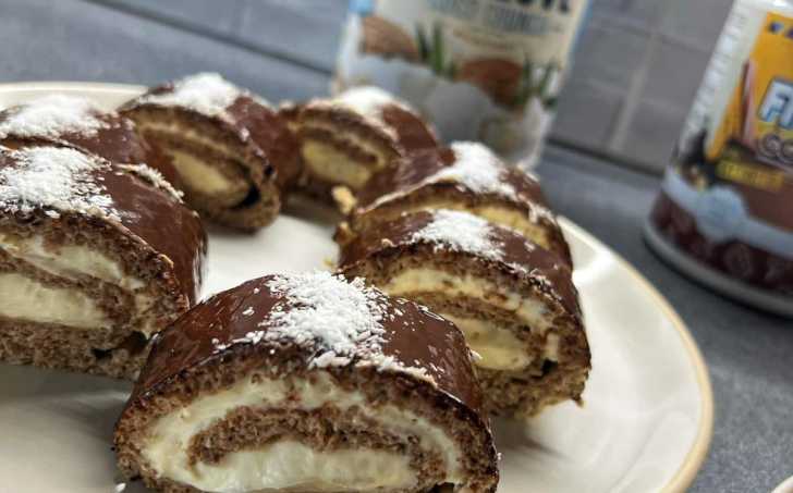 Naplníme ,zamotáme ,potřeme čokoládou a ozdobíme kokosem.
