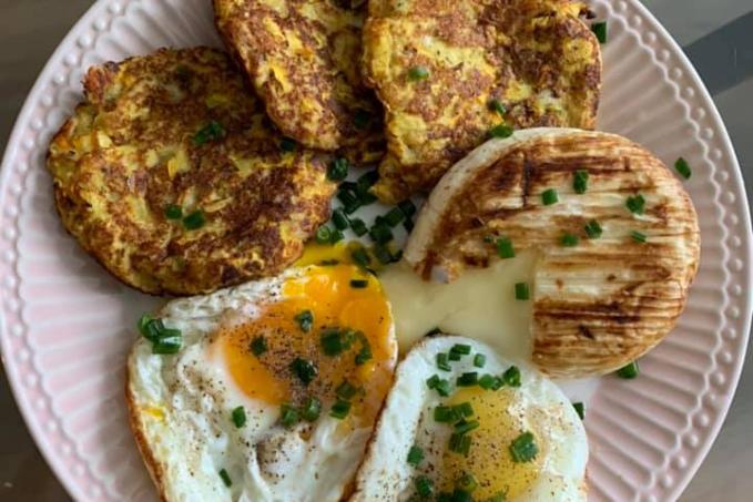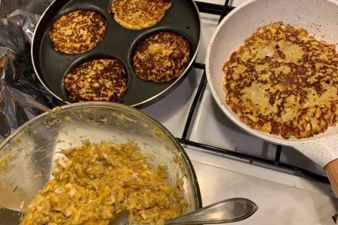 Smažit na sádle, lepší je lívanečník, lépe se to otáčí. Jelikož zelenina došla, chodím na trh jen v pondělí, tak k tomu jen vejce a gril hermelín.
