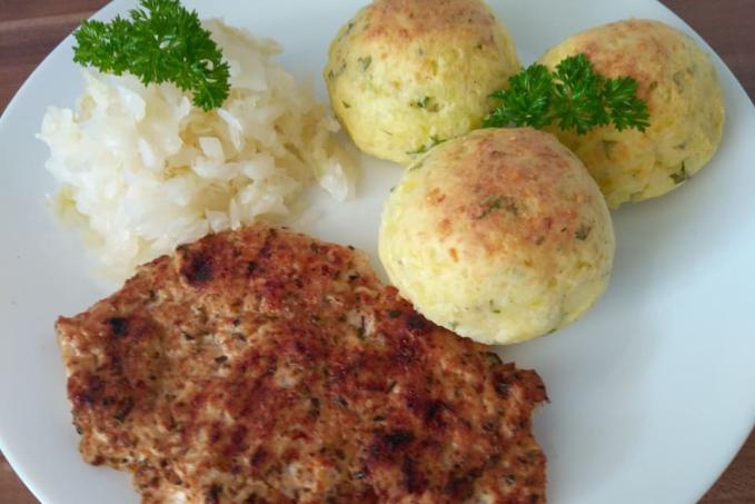 Dnešní oběd: Bramborovo-sýrové koule,přírodní kuřecí plátek.