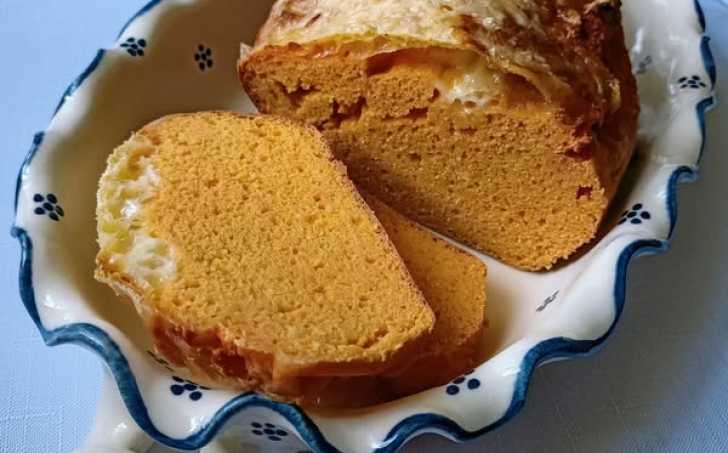 Vlijeme do chlebíčkové formy vyložené pečícím papírem, posypeme strouhaným sýrem a vložíme do předem vyhřáté trouby.