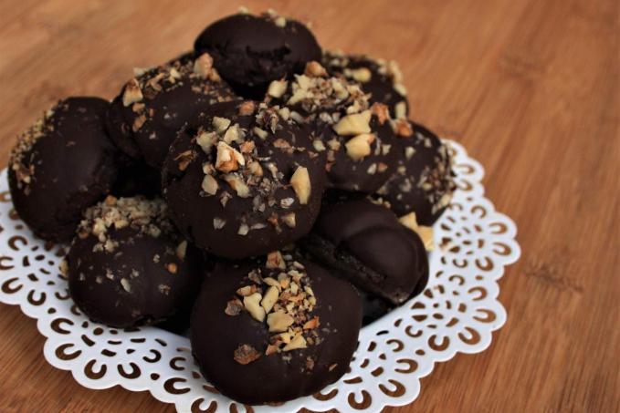 Z těsta tvořte kuličky, lehce zmáčkněte. Poté pečte 10min. při 180 st.