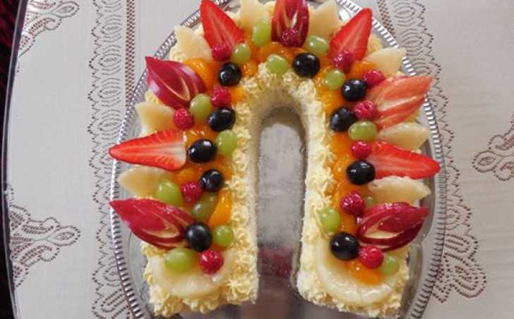 Korpus rozkrojíme,spodní půlku postříkáme trochu šťávou z kompotu, natřeme marmeládou a naneseme krém. Přiklopíme vrchní částí. Opět trochu navlhčíme šťávou z kompotu a potřeme krémem vrch i boky celé podkovy.