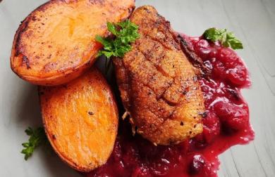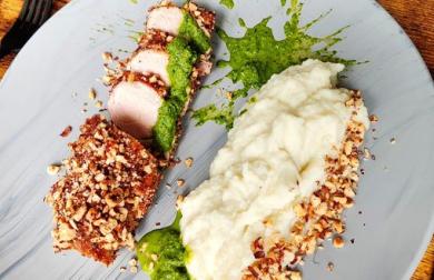 Filety z candáta, bazalková omáčka a kedlubnové hranolky