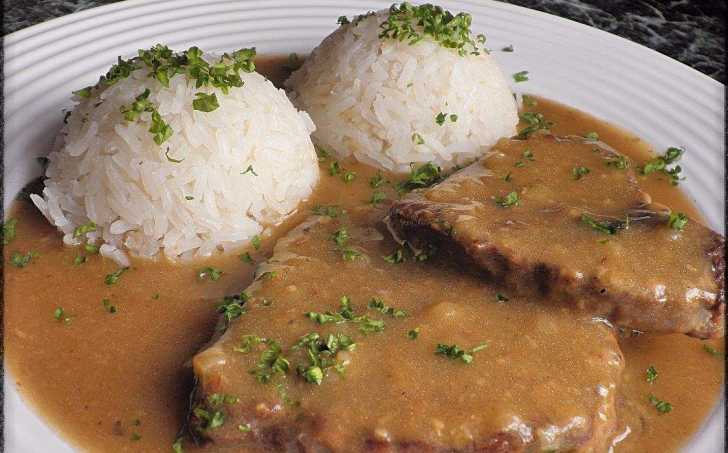 Po orestování maso naskládáme do hrnce (já použila papiňáček). Ve vzniklém výpeku orestujeme cibuli a zarestujeme asi 3 lžíce mouky, vše přidáme do hrnce k masu, zalijeme vývarem, aby bylo maso potopené, uzavřeme hrnec a dusíme doměkka.