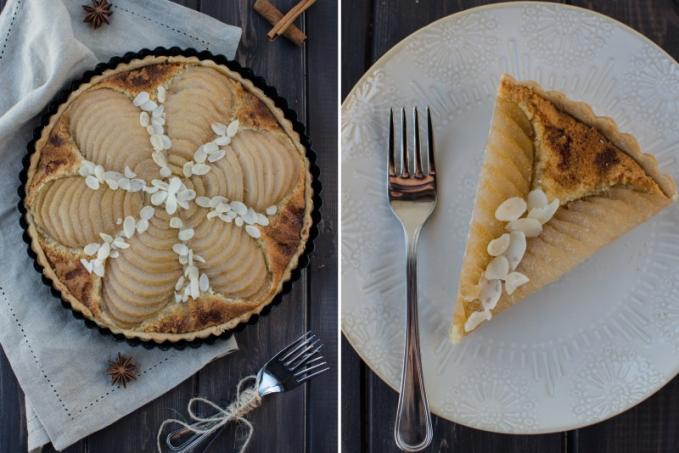 Minulý víkend jsem chtěla upéct mandlový koláč na způsob frangipane (koláč s náplní z mandlí, cukru, másla a vejce), což je taková francouzská klasika. Loni jsem ho dělala se švestkami (recept najdete zde), nicméně letos mi padly do hledáčku hrušky, a tak se z toho vyklubal tenhle lahodný hruškový koláč s mandlovou náplní, který chutná a voní po badyánu, skořici a Calvadosu, čímž potěší každého gurmána.