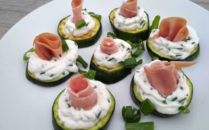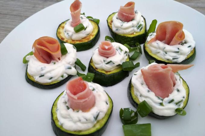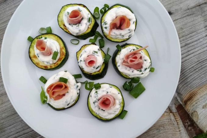 Na vychladlá cuketová kolečka tvoříme slaným krémem kopečky. Pokud je chcete mít hezky úhledné, můžete použít zdobicí pytlík.