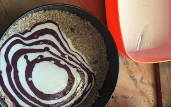 Postupně po lžičkách vrstvěte. 2 lžíce bílé – 1 lžíce borůvkové smesi.