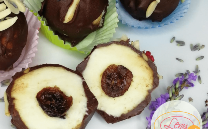 Kuličky namočíme do čokolády a ihned posypeme sekanými mandlemi a třeba jako já sušenou levandulí.