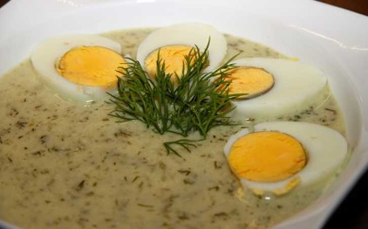 Připravte si zeleninový vývar, vmíchejte obě smetany a nasekaný kopr.