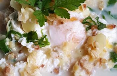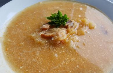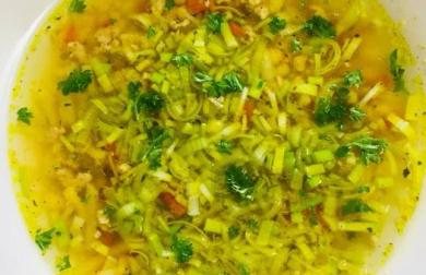 Na lžíci másla si orestujeme najemno nakrájenou cibuli, přidáme na plátky nakrájený česnek a necháme rozvonět. Česnek s cibulí zaprášíme moukou a lehce orestujeme. Zalijeme vývarem, přidáme nať a vaříme do úplného změknutí( i tužších částí). Nakonec zjemníme smetanou a rozmixujeme ponorným mixérem. Polévku přecedíme přez jemné sýto a podáváme. Můžeme doladit lžičkou smetany na ozdobu nebo zakápnout kvalitním olivovým olejem. Určitě zkuste!!!