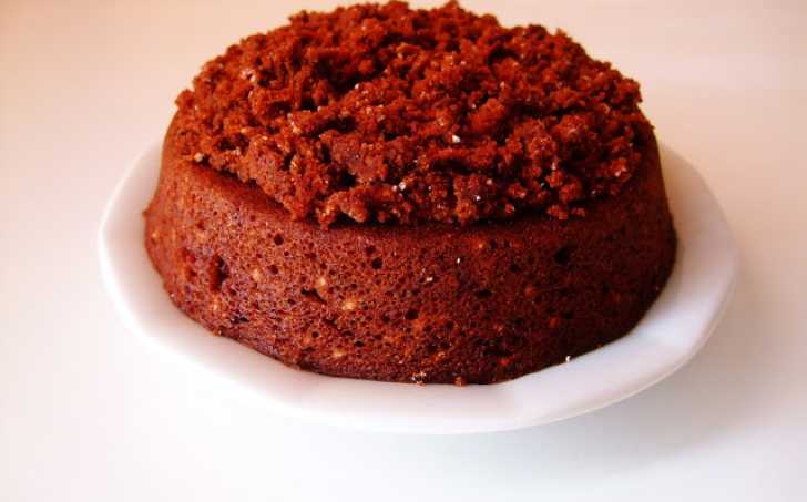 Smíchejte špaldovou mouku s pudinkem a kokosovou moukou. Přidejte prášek do pečiva, kakao a sladidlo. Nakonec vlijte olej a mléko. Důkladně promíchejte, nalijte do kulaté formy (průměr cca 12 cm) a pečte cca 2 minuty. Po upečení vyklopte z formy a nechte vychladnout.