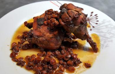 Krůtí nakládaná masová směs v povidlech a medu se zeleninou a rýží