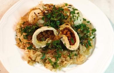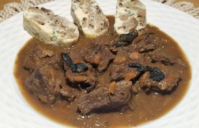 Přidáme maso nakrájené na střední kousky, důkladně promícháme a orestujeme.