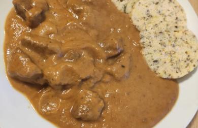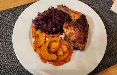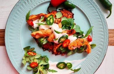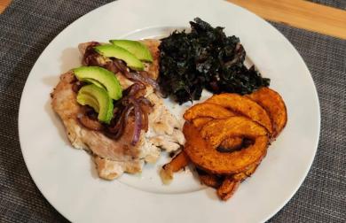 Kuřecí prso v "batáťáku" a mačkané avokádo s jalapeno