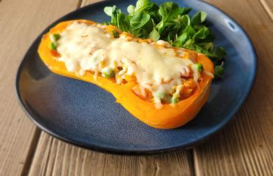 1. Batát nastrouháme,přidáme sýr, vejce, česnek, majoránku, kmín, sůl, pepř a pořádně promícháme. Kuřecí prso rozřízneme, osolíme a opepříme. Část směsi z batátů rozprostřeme na plech s pečícím papírem, na něj položíme kuřecí prsa a přikryjeme další částí z batátů. Pečeme na 180 stupňů dozlatova.