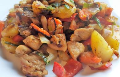 Maso nakrájíme na kousky a dusíme s paprikou, solí a částí vývaru asi 10 minut. K masu přidáme rýži a podlijeme zbytkem vývaru. Přikryjeme poklicí a dusíme v troubě až rizoto zhoustne.