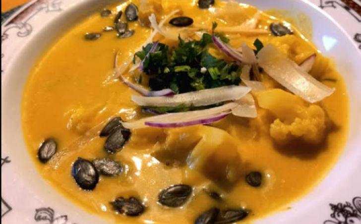 Na ghi jsem osmažila kostičky zeleniny ( část květáku jsem odložila) s kurkumou a pepřem. Podlila vývarem , po změknutí jsem odebrala asi 1/4 zeleniny, zbytek jsem rozmixovala se 2 lžícemi lahůdkového droždí. Na posledních pár minut jsem přidala malé růžičky syrového květáku ( aby zůstal chrumkavý😉) a přidala odebranou zeleninu.