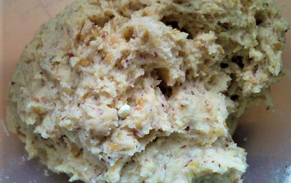 Rozmixujte najemno lněné semínko. Veškeré suroviny smíchejte s kváskem a dobře propracujete - nejlépe hnětačem. Těsto se může zdát zpočátku řidší, ale vytrvejte. Jakmile se těsto začne odlepovat od stěn mísy, ještě chvíli propracujte, pak přikryjte utěrkou a nechte kynout na teplém místě cca 30 - 45min.