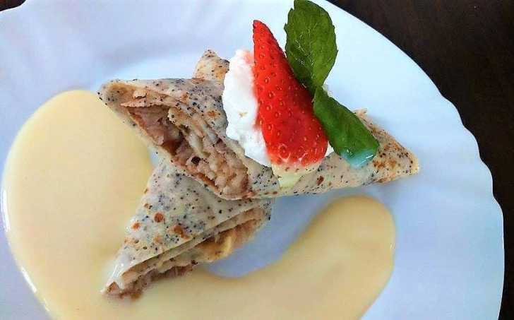 Do pánve dáme kousek sádla, rozpálíme, v tenké vrstvě nalejeme těsto a smažíme z obou stran do zlatova.