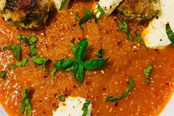Jako příloha polévka z pečené zeleniny, kterou jsem sem dávala včera. Přes noc trochu zhoustla, tak ji mám místo omáčky :). No a zbytek mozzarelly od včera. A vznikl mi tak výborný oběd.