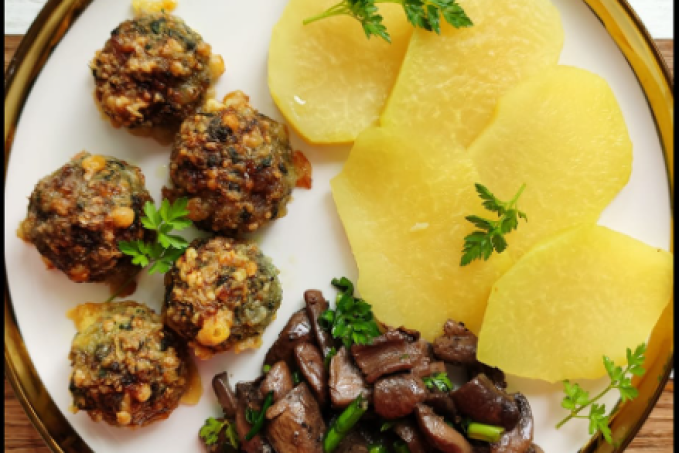 Vše si smícháme a vytvoříme kuličky, které muzeme usmažit, upéct a nebo jako já je uděláme v horkovzdušné fritéze (Klarstein VitAir) - program pečení na 15 minut (z vrchu jsou krásně křupavé a uvnitř šťavnaté).