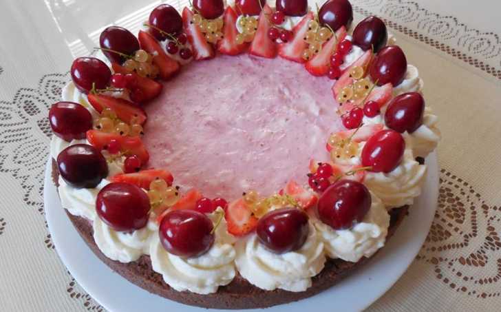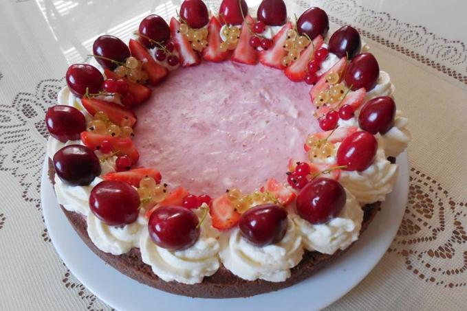 Potom odstraníme formu a alobal a dozdobíme šlehačkou a ovocem.