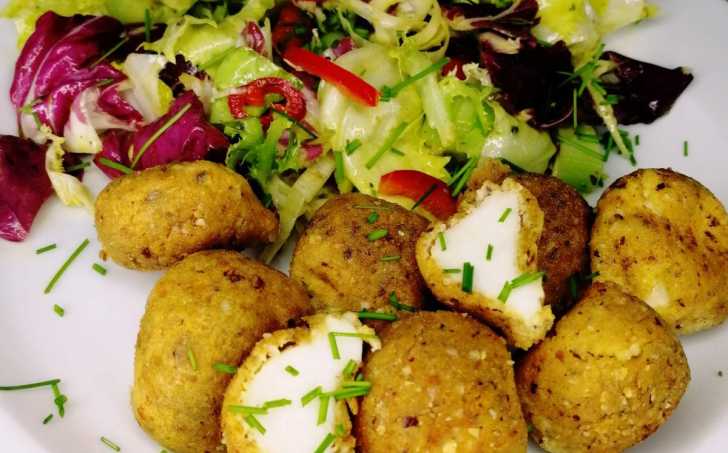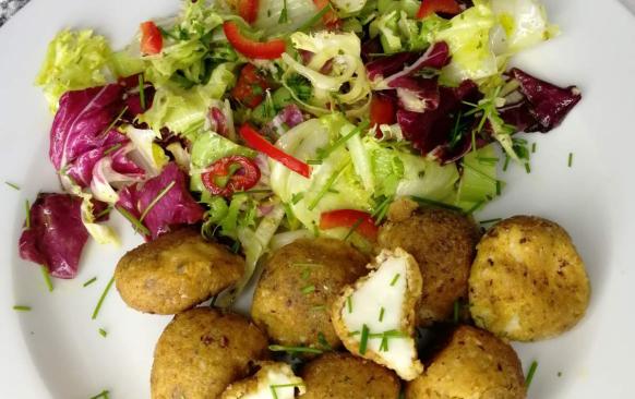 Dvakrát obalené kuličky smažíme krátkou dobu na pánvi nebo ve fritéze. Maximálně 3 minuty, aby došlo pouze k osmažení obalové části, jinak se nám kuličky roztečou. Hotové přendáme na ubrousek.
