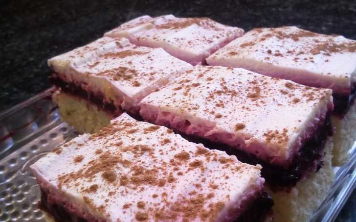 Krém natřeme na ovocnou vrstvu, uhladíme a lehce poprášíme skořicí.