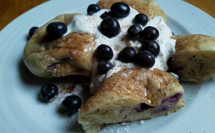 Těsto vysypte na pomoučněný vál, rozdělte na 12ks, každý kousek rozmáčkněte na placičku, do středu dejte ovoce (borůvky) a zabalte je do těsta. Snažte se, aby vrstva těsta byla rovnoměrná a knedlíky neobsahovaly uvnitř vzduch. Knedlíky před vařením nechte ještě asi 10minut kynout na pomoučněném vále přikryté utěrkou nebo potravinářskou folií (aby neosychaly).