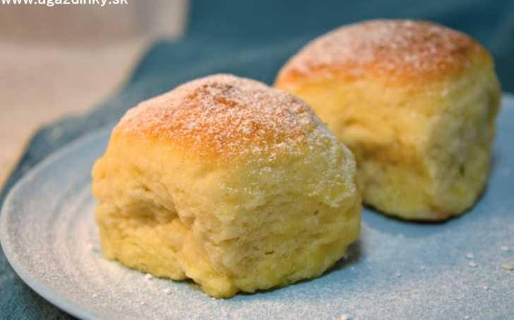 Pečené buchty bez lepku necháme jemne vychladnúť a poprášime ich práškovým cukrom.