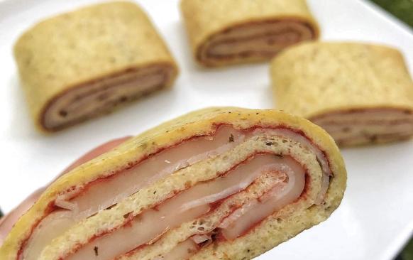 Po vytažení potřeme rajčatovým protlakem, posypeme oregánem a vyskládáme šunkou se sýrem. Zabalíme jako štrúdl a vrátíme ještě na chvíli do trouby. Nejlépe se krájí vychladnutý.