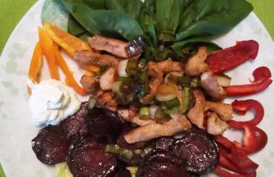 Z vnitřků řepy salát - velká kedlubna, zbytek mrkve - vše nastrouhat, jarní cibulka, citronová šťáva, citronový oliv.olej, sůl, pepř.