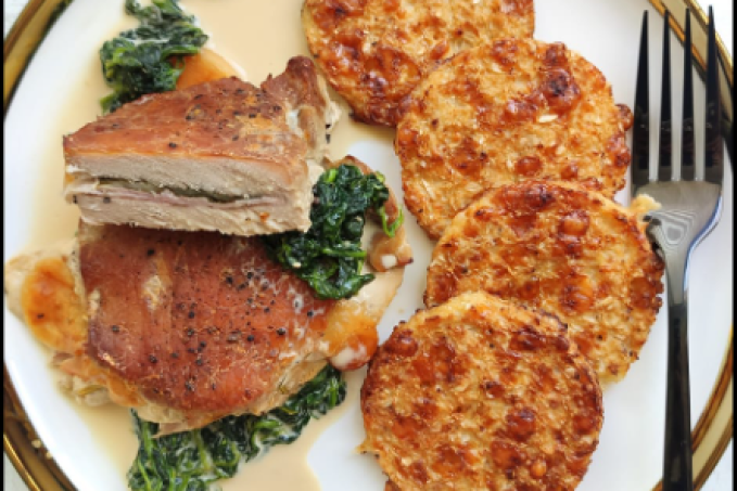 Maso odblaníme, nařežeme, naklepeme a z obou stran osolíme a opepříme. Poté dáme na jednu půlku masa šunku, špenát, sýr a přiklopíme druhou polovinou.