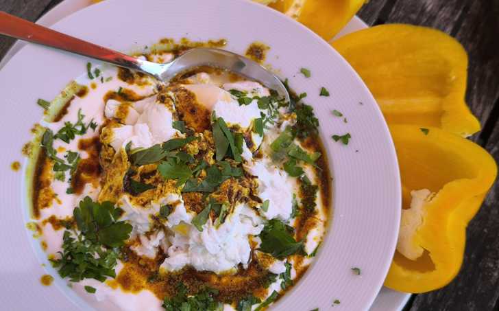 Pošírovaná vejce s jogurtem a kari zálivkou