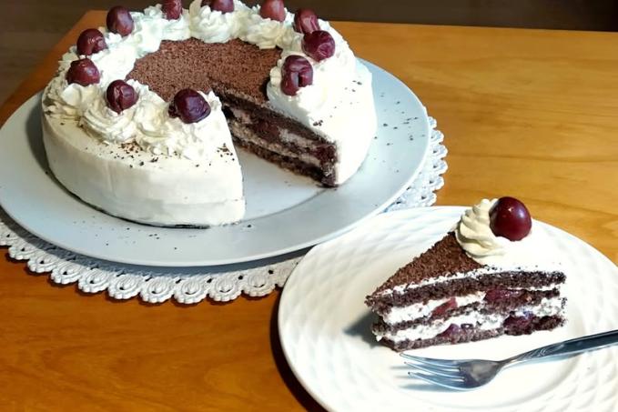 Recept na tento dort spatřil světlo světa začátkem 20. stolení v německém Porýní. Schwarzwaldský se jmenuje proto, že z Černého lesa pochází třešňová pálenka, která se do dortu přidává. Dort se vyznačuje lákavou kombinací barev bílé, černé a červené a originálním spojením sladké, hořké a kyselé chuti. To vše tomuto dortu dodají jeho nezbytné ingredience - šlehačka, čokoláda a třešně nebo višně.