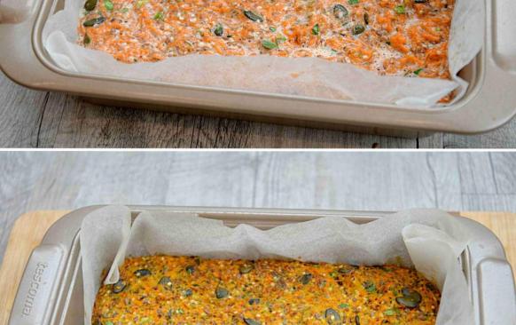 Oloupané mrkve nastrouhám najemno. Strouhanou mrkev promíchám s ostatními ingrediencemi, naliji do formy na chlebík a peču v předem předehřáté troubě na 180°C 35 min.