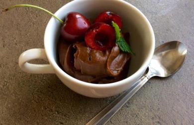 V míse vyšleháme ručním elektrickým šlehačem žloutky s cukrem do husté bílé pěny, poté vmícháme už jen vařečkou kakao a nakonec tuhý sníh z bílků, ušlehaný se špetkou soli.